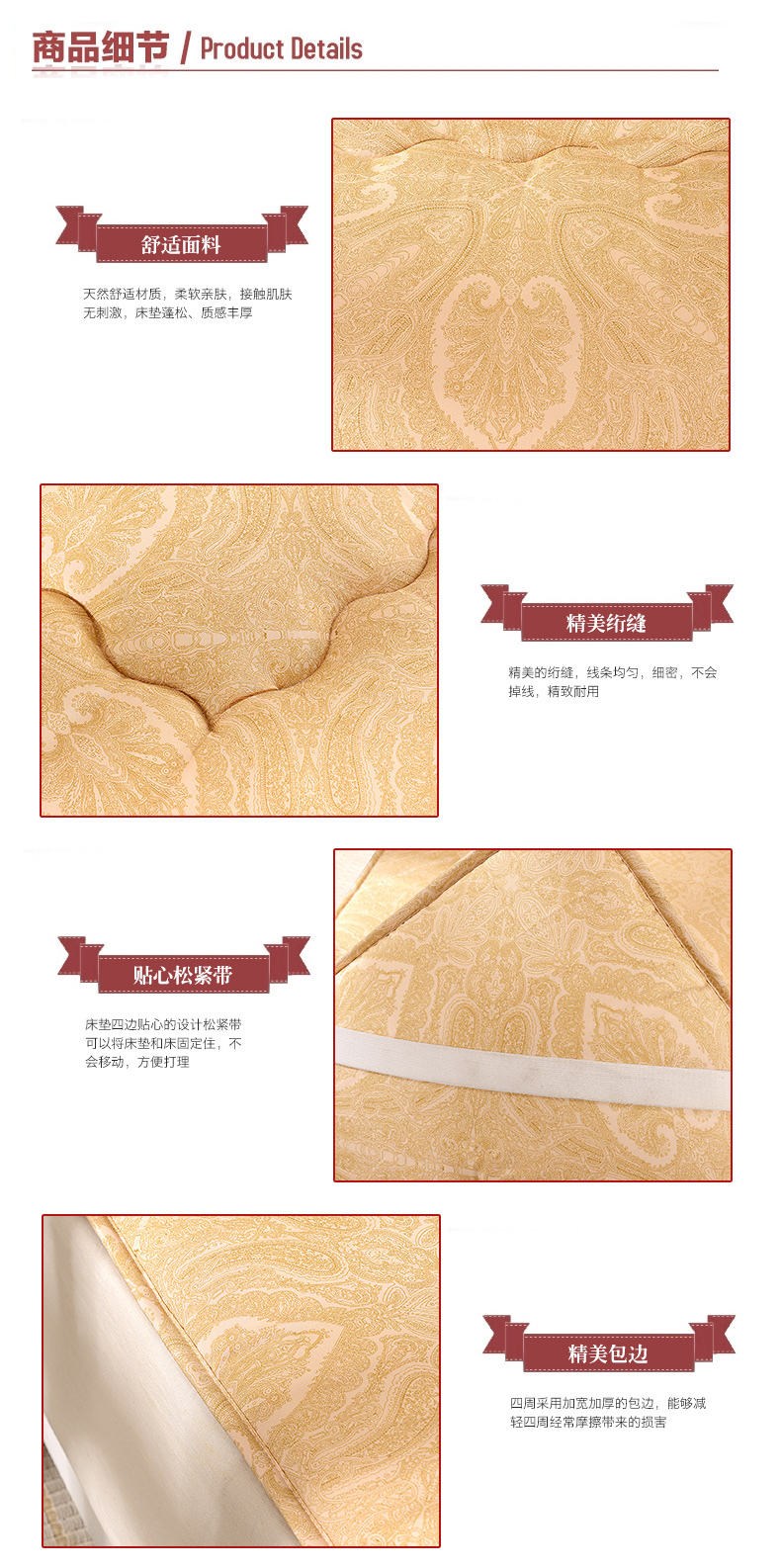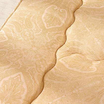 產(chǎn)品特點(diǎn):填充物為高彈聚酯纖維,用料足,飽滿蓬松,透氣防潮,緊實(shí)牢固,輕盈耐用。經(jīng)典佩茲利印花,手感柔軟舒適,觸感細(xì)膩親膚,透氣性好,暖暖舒適睡眠體驗(yàn)。