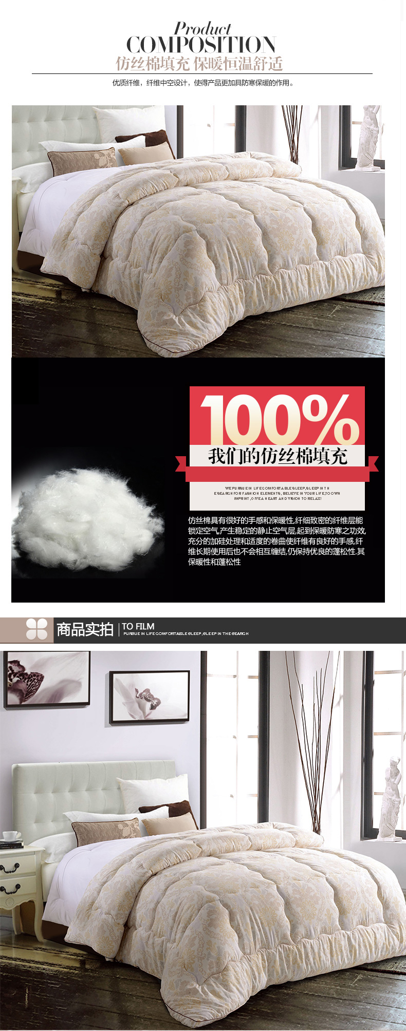 填充物:480g/m2仿絲棉 100%聚酯纖維