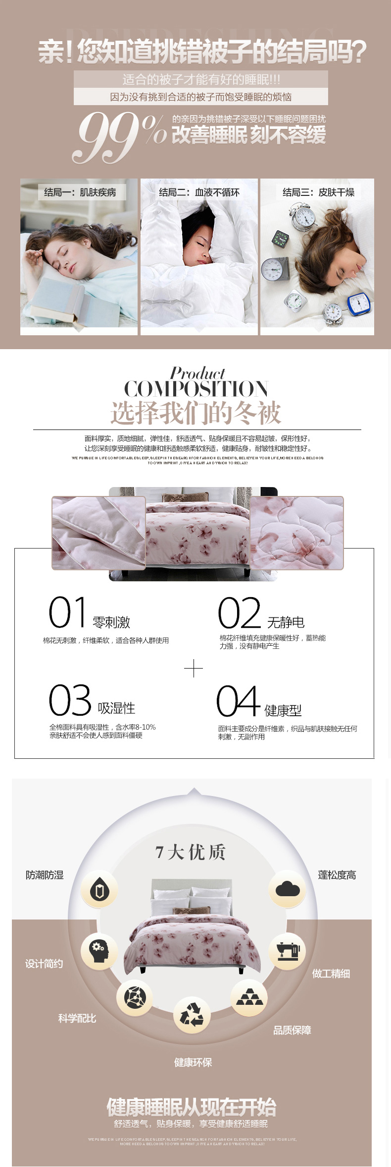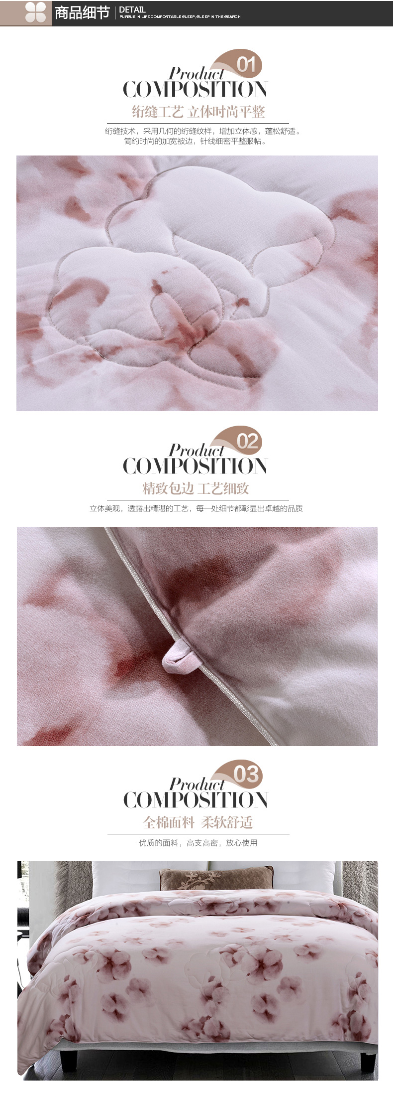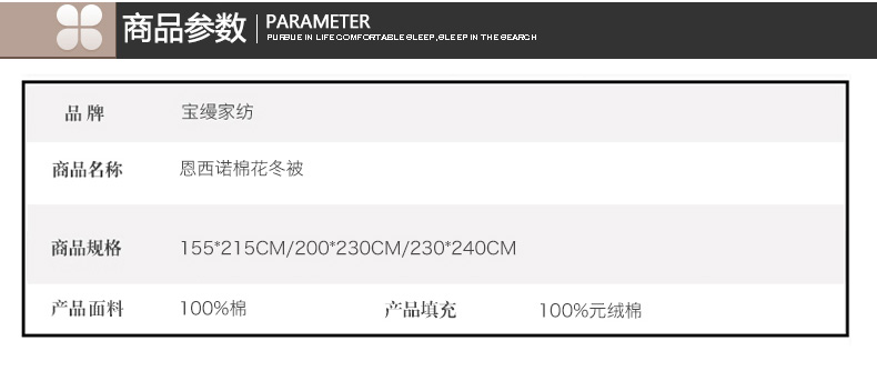 填充物:100%元絨棉 1.4kg/2kg/2.4kg