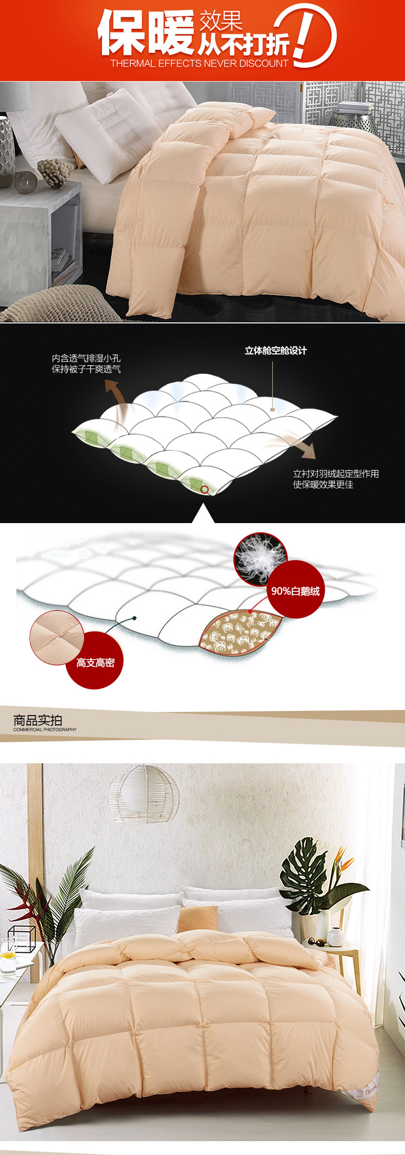 填充物:90%白鵝絨 0.8kg/1.1kg /1.3kg