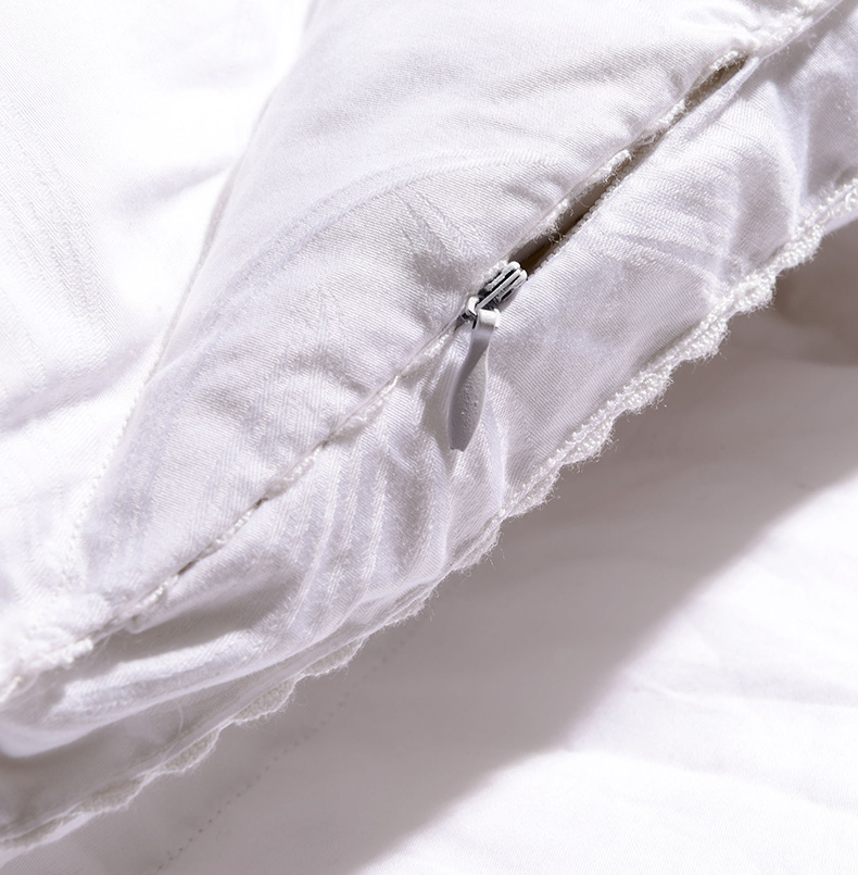 工藝:雙層花邊拉筋工藝,四周采用上下白色棉花邊拉筋工藝,可固定四周羽絨填充。方格絎縫工藝,細(xì)密的針腳體現(xiàn)了品質(zhì)。
