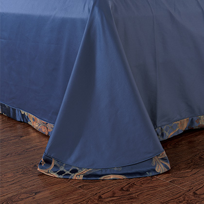 第一:高支高密提花面料純棉織物的經(jīng)緯密度特別大,織法變化豐富,因此面料手感厚實,耐用性能好,布面光潔度高,多為淺色底起本色花,格外別致高雅,是產(chǎn)品面料中較為高級的一種。