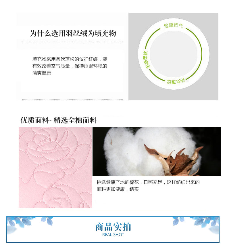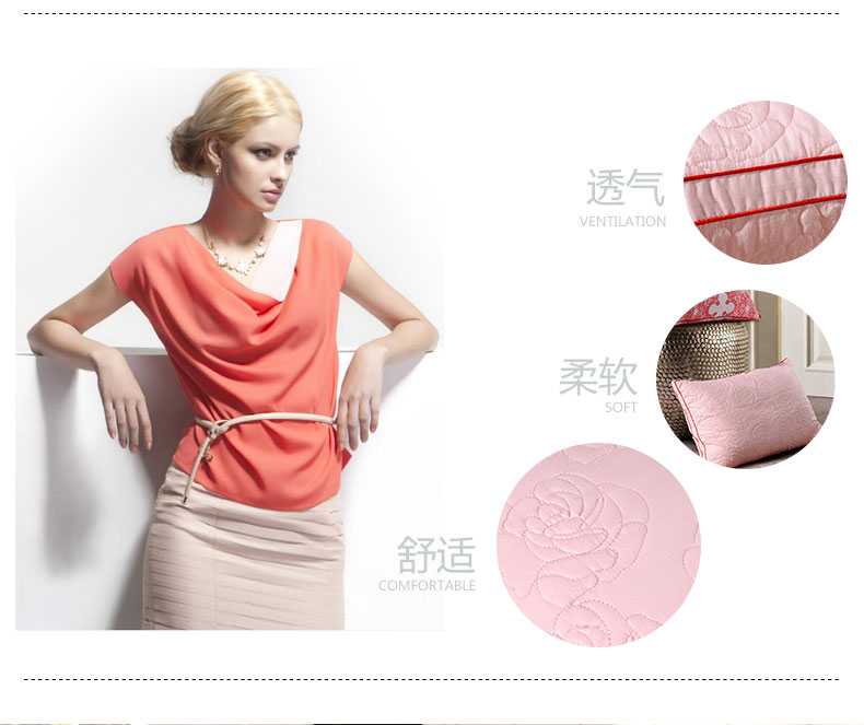 產(chǎn)品特點:填充物采用柔軟蓬松的儀征纖維,能有效改善空氣質(zhì)量,保持睡眠環(huán)境的清爽健康。粉色面料,增添喜慶。